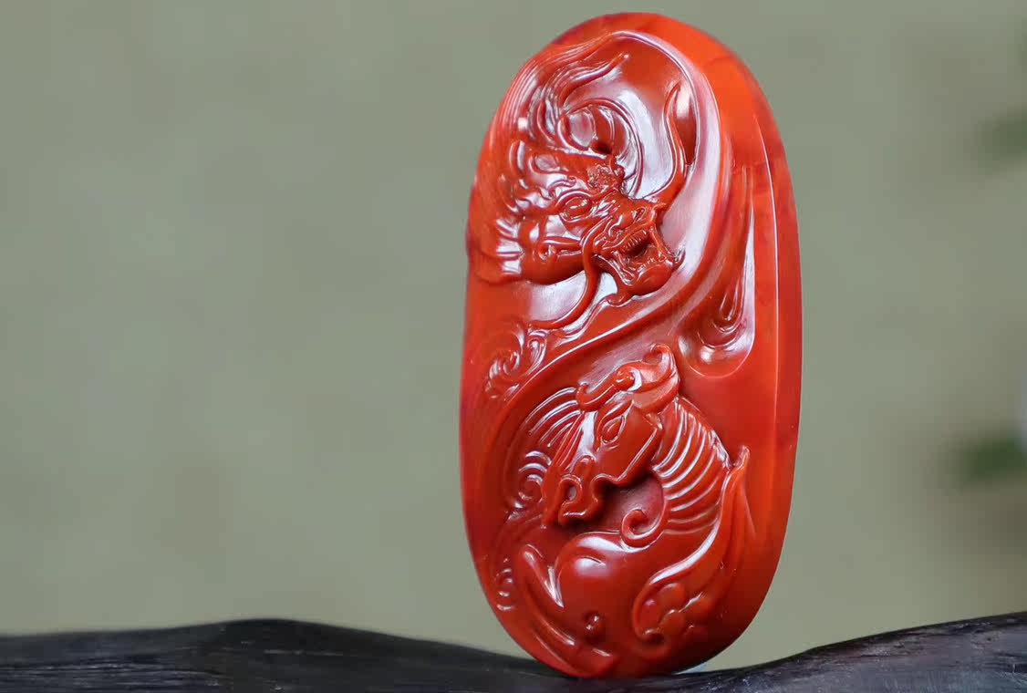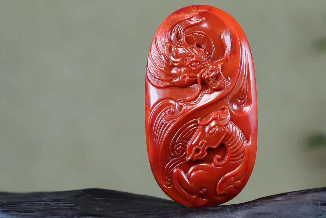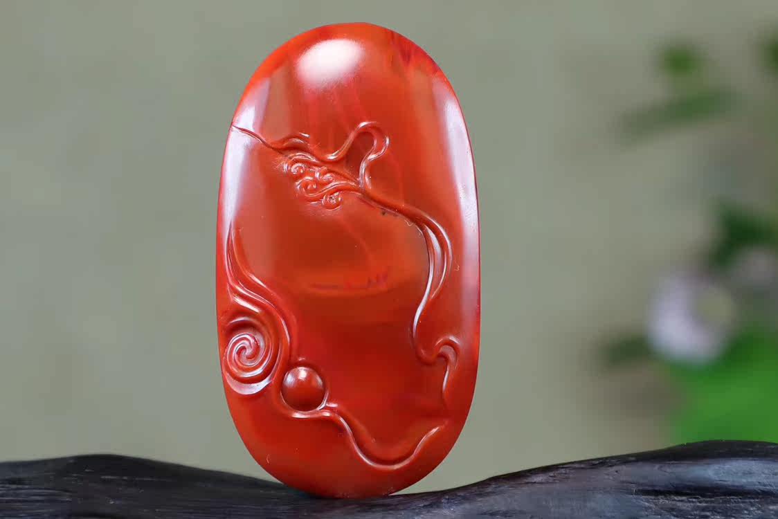 Longma spirit Liangshan South red persimmon rose red carving piece