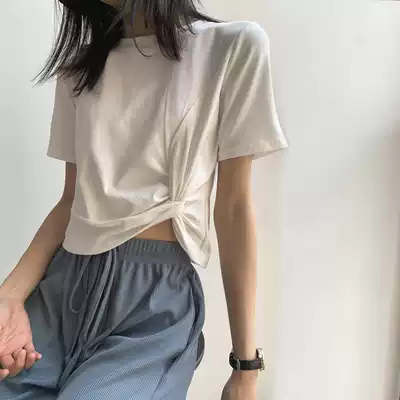 White short-sleeved T-shirt women's cross short Sexy Slim high waist navel tight ins summer cotton slim top