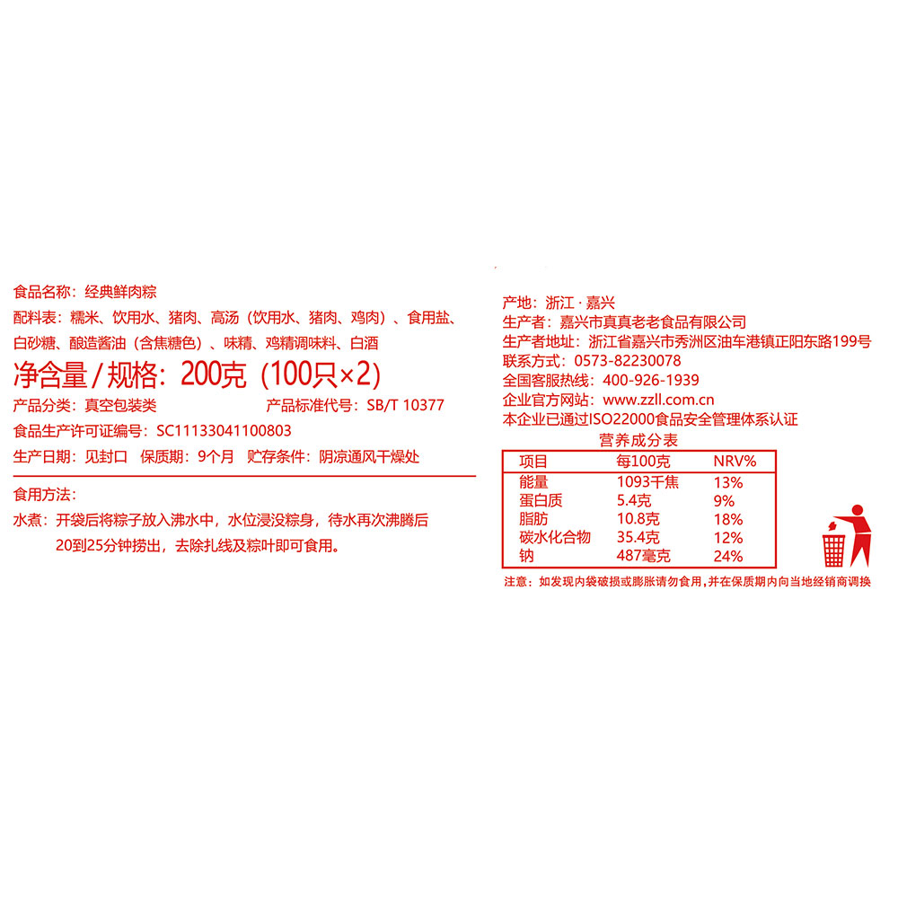 Zhenzhen old Jiaxing zongzi classic fresh meat zongzi 100g * 2 Zhejiang specialty dragon boat festival breakfast zongzi