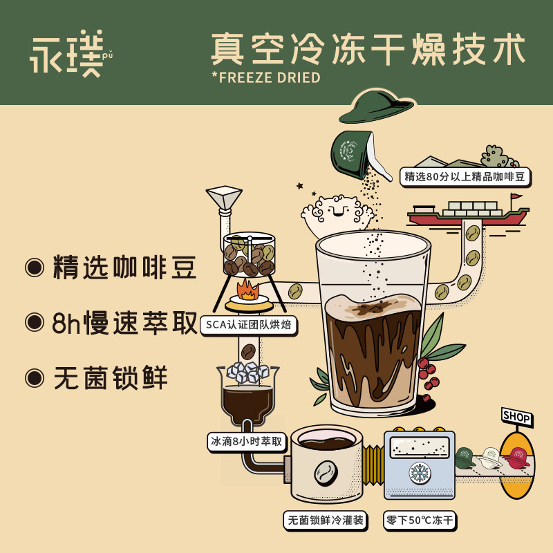 Yongpu) Brand new 50 Cold Brew Saucer Boutique Instant Freeze-dried Coffee Latte Refreshing Pure Black Coffee Powder 39 pieces