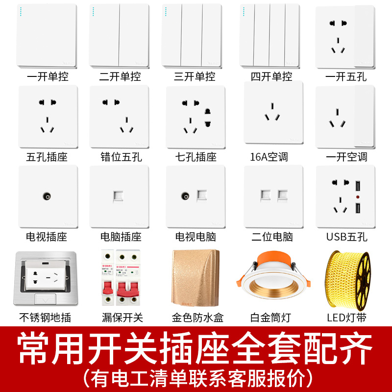 (Triple Open Double Cut) Home Concealed Wall Wall Wall Wall Wall 86 Type Switch Socket Light Switch Triple Triple Double
