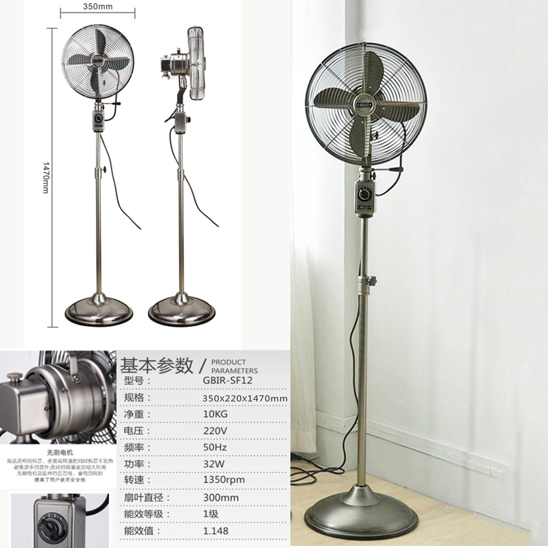 FS7-30-Standing fan with solid wood tripod in dumb lead color GBIR-SF10 inch rust green metal floor fan GBIR-SF12 inch metal floor fan GBIR-SF in dumb lead color GBIR-