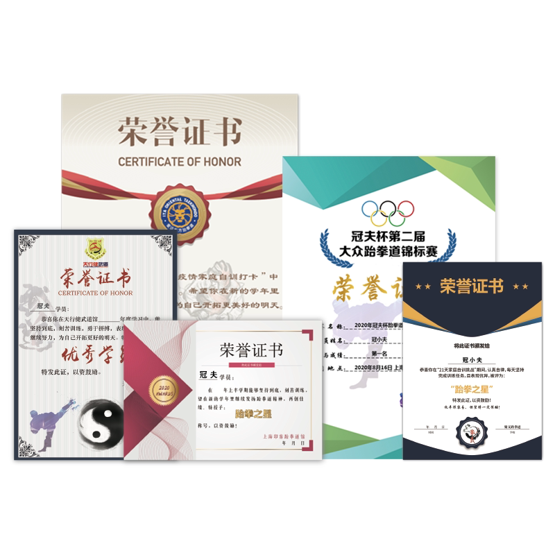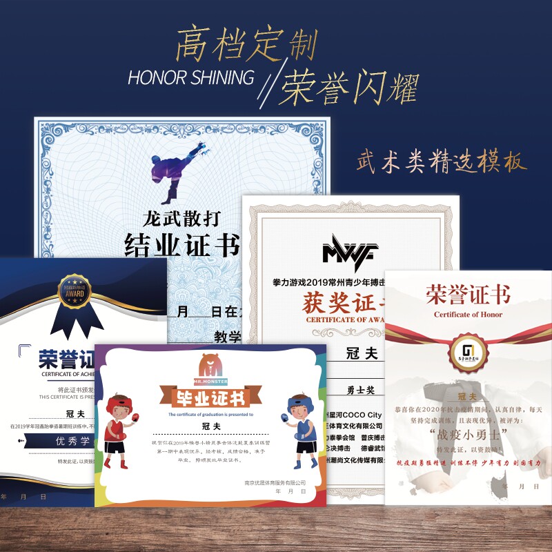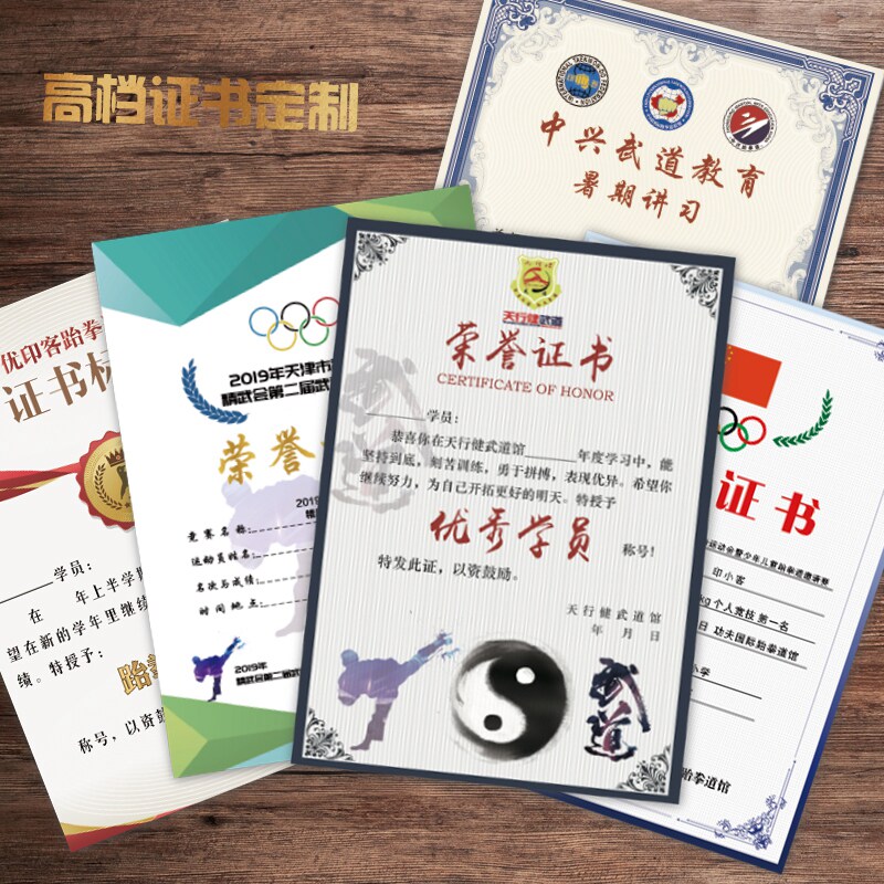 Custom certificate of honor Martial arts Taekwondo certificate of completion Creative certificate Paper A4 cartoon Kindergarten Sanda boxing course training Sports competition award Knot camp dance art outstanding students
