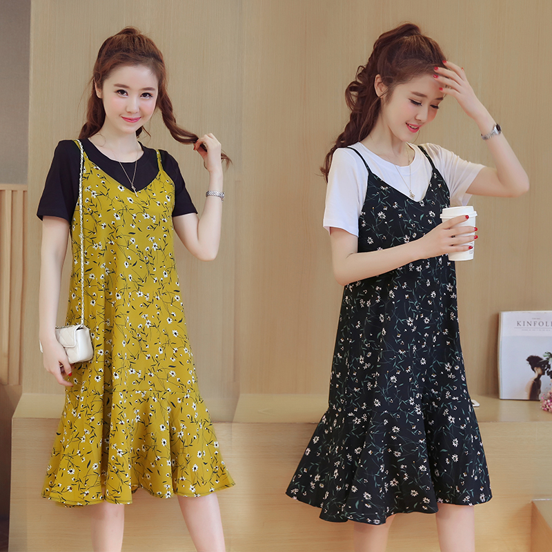 Maternity Summer Suit Fashion 2022 New Premium Sense Net Red Slip Skirt Summer Dress Looks Thin And Floral
