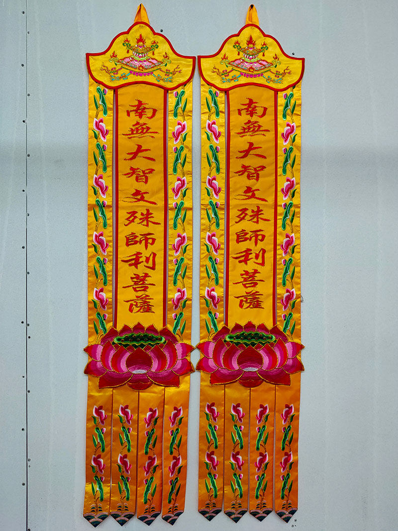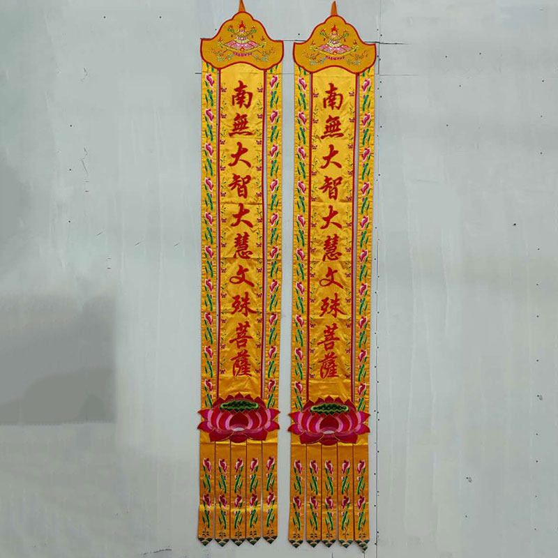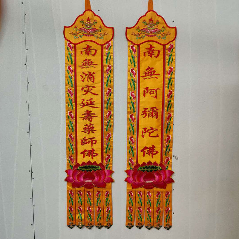 2 meters tide embroidered flags, prayer flags, temple embroidery, long flags, Guanyin, Amitabha, hanging flags, manufacturers custom Baogai flags, Buddha flags