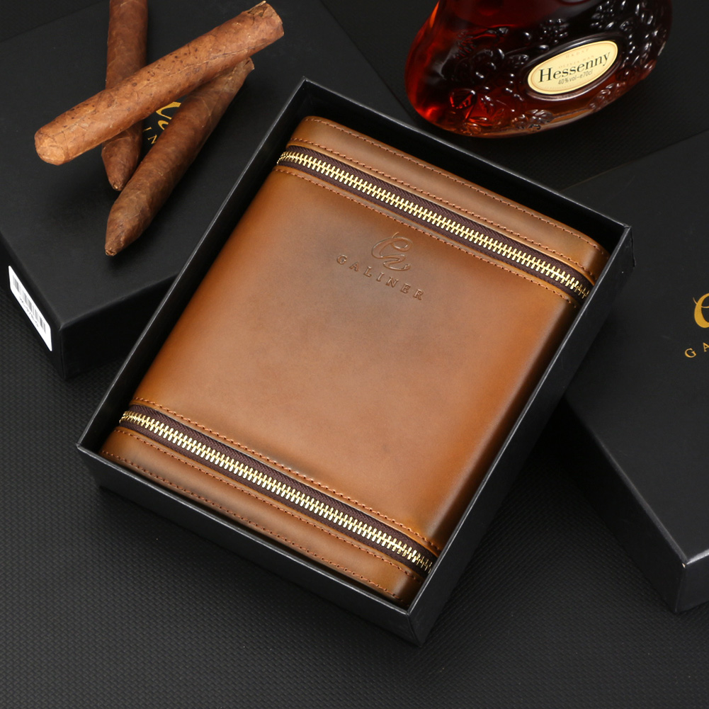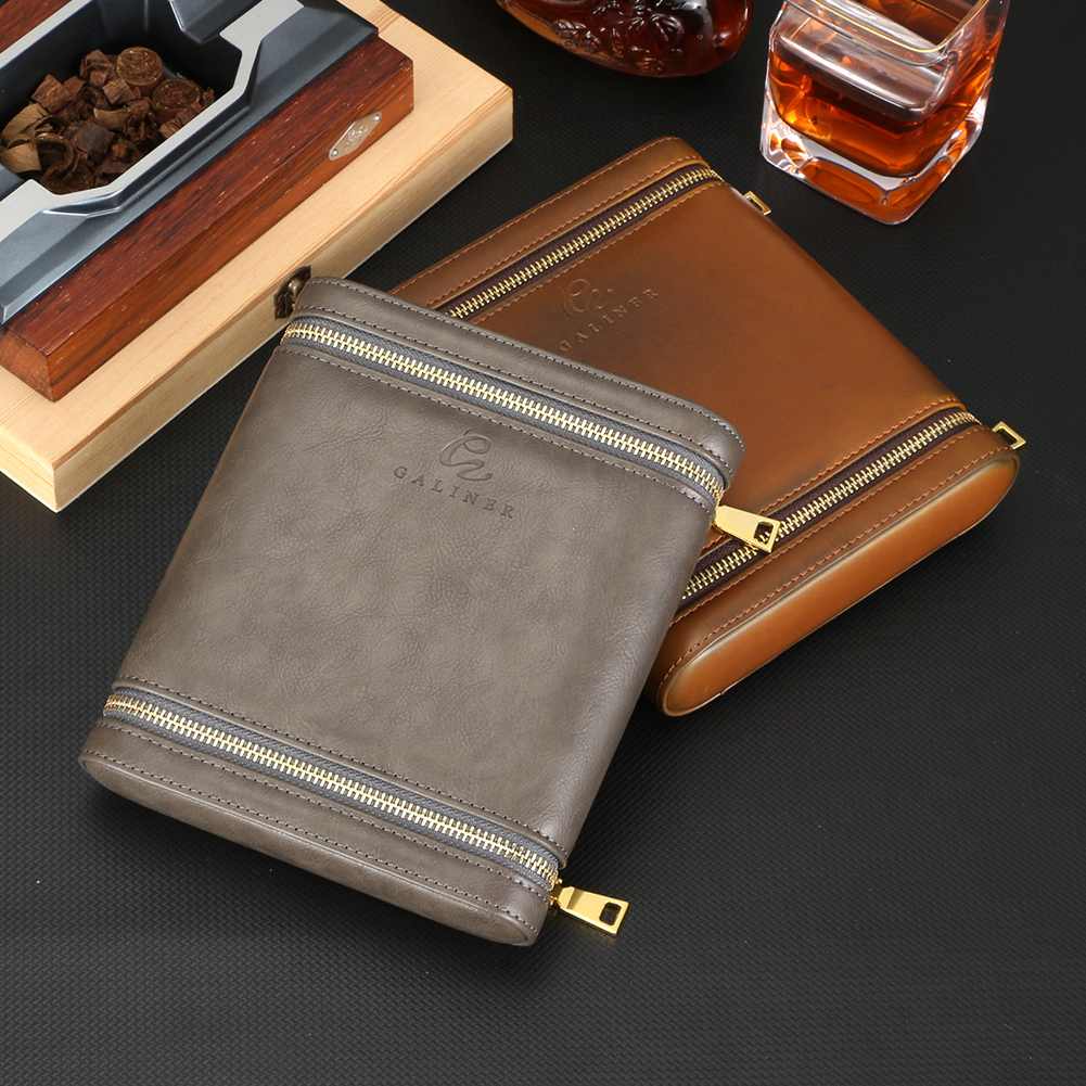 Humidor Portable built-in humidifier cigar humidor 6-pack cigar case cigarette case leather case cigar case