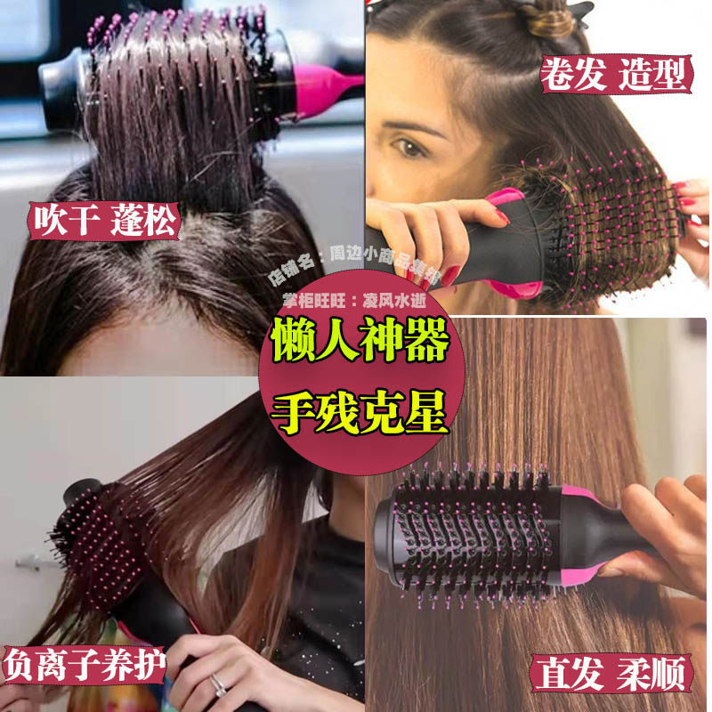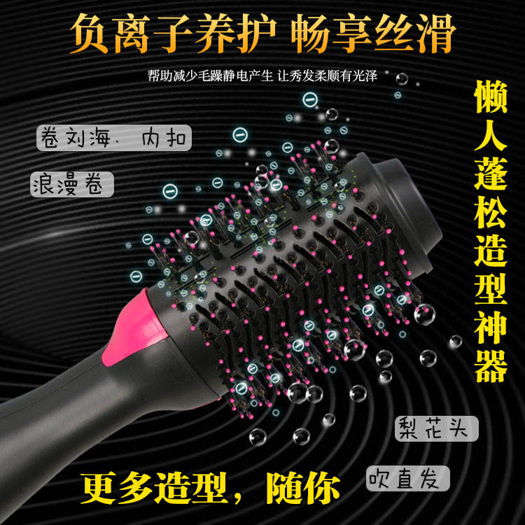 Multifunctional negative ion fluffy hot air comb roll straight dry and wet dual-use internal buckle wave styling blow comb integrated household