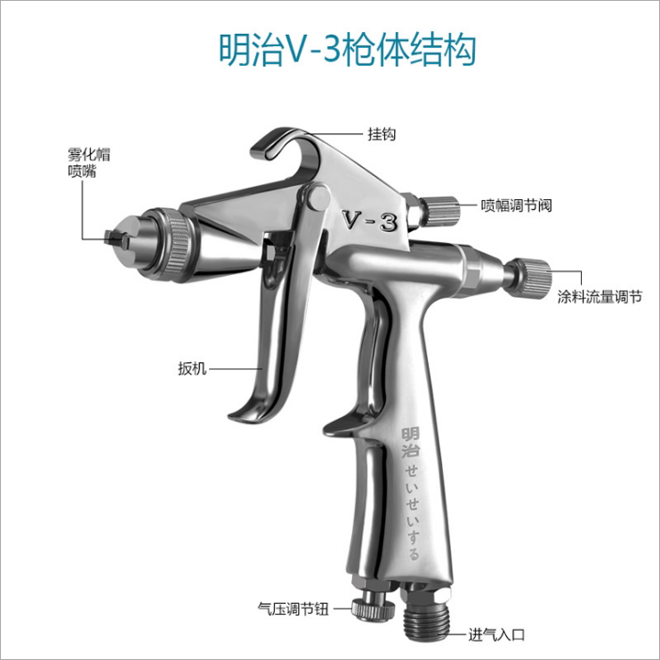 Mini word special spray paint gun 0 5mm caliber pneumatic car paint gun advertising luminous word Meiji V-3 spray gun