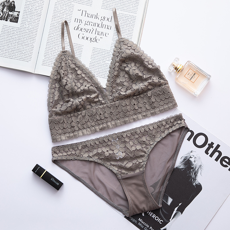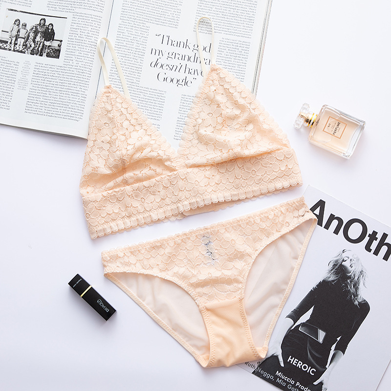 Underwear women's bralette French sexy no steel ring thin cotton pad no bump thin strap beautiful back small chest lace bra