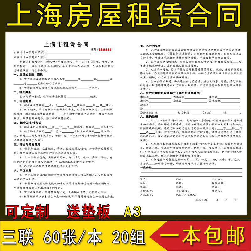 One A3 Shanghai special house rental contract triple house rental contract triple intermediary agreement second-hand rental contract house rental agreement Custom Shanghai rental contract-Taobao