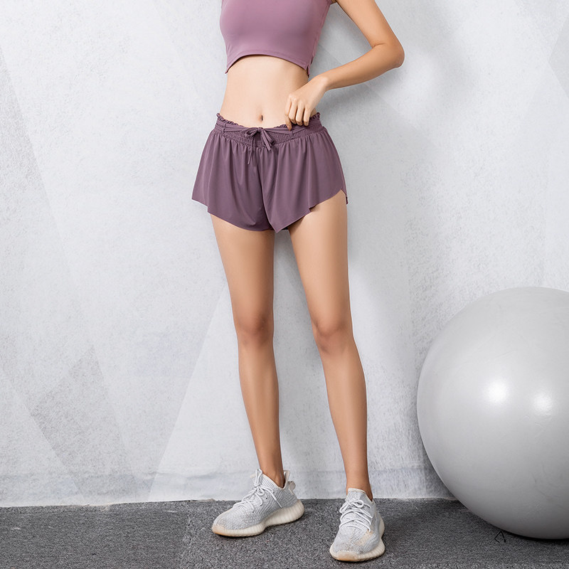 Sports Shorts Women Indoor Anti-Walk Light With Pockets Outdoor Running Fitness Yoga 30% Pants Lace Elastic Speed Dry