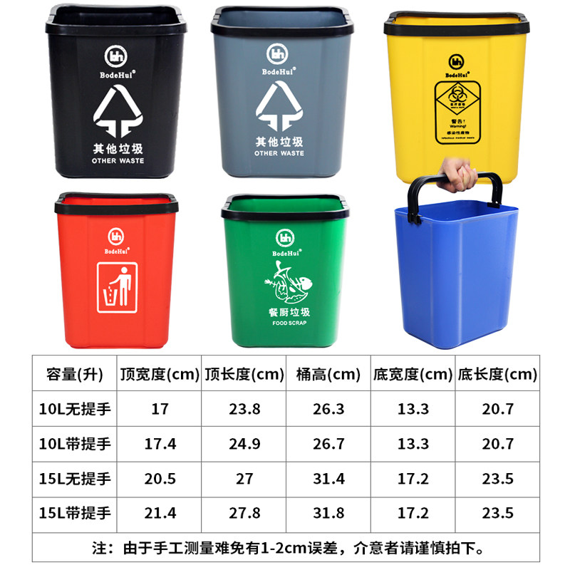 10L thickened green kitchen waste 10L thickened blue recyclables 10L thickened grey Other garbage 10L thickened red harmful garbage 10L thickened yellow Medical garbage 10L thickened