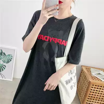 Confinement nursing clothes out of summer short-sleeved mid-length version of nursing dress cartoon nursing clothes hot mom nursing top