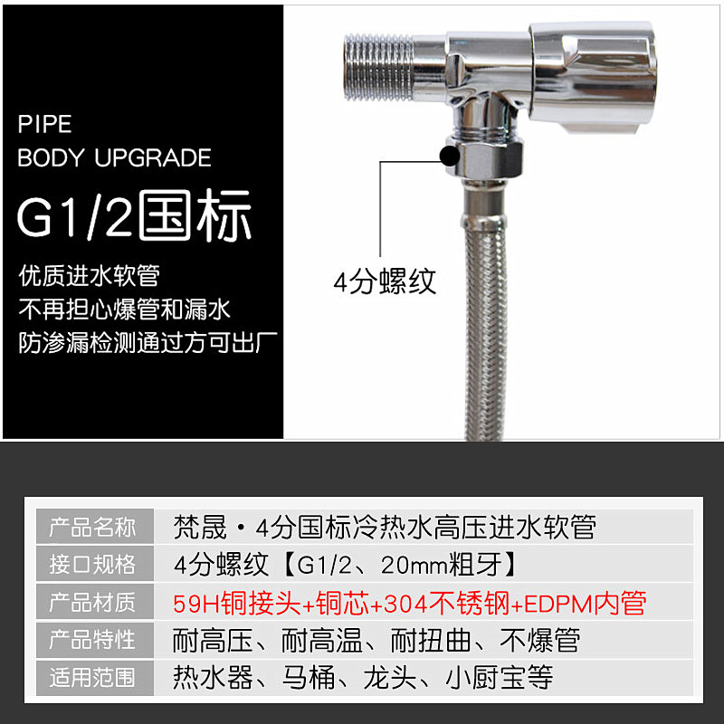 Sanskrit 304 stainless steel braided hose thickened encrypted explosion protection 4 minutes toilet cleaning appliance bathroom kitchen water intake hose