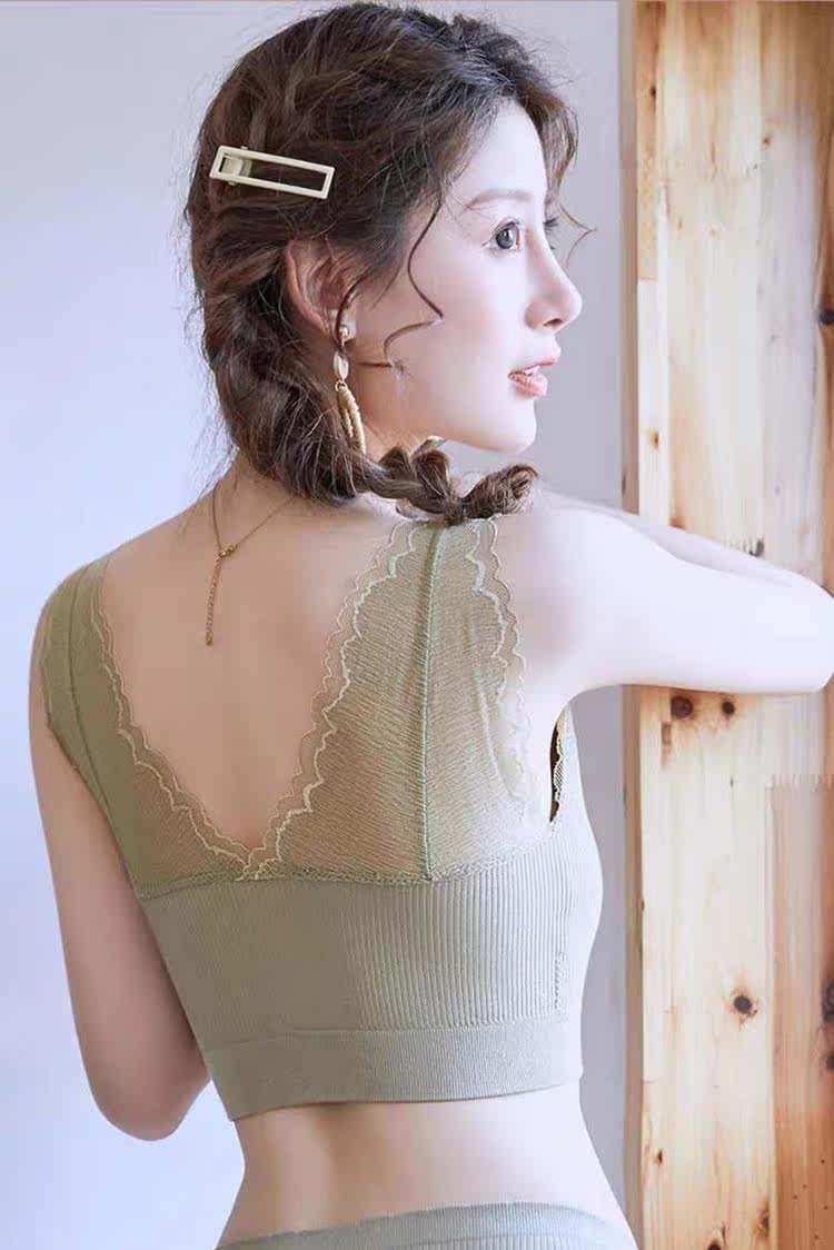 Seamless lace beauty underwear sexy gathering bra wide shoulder V-tip lady vest