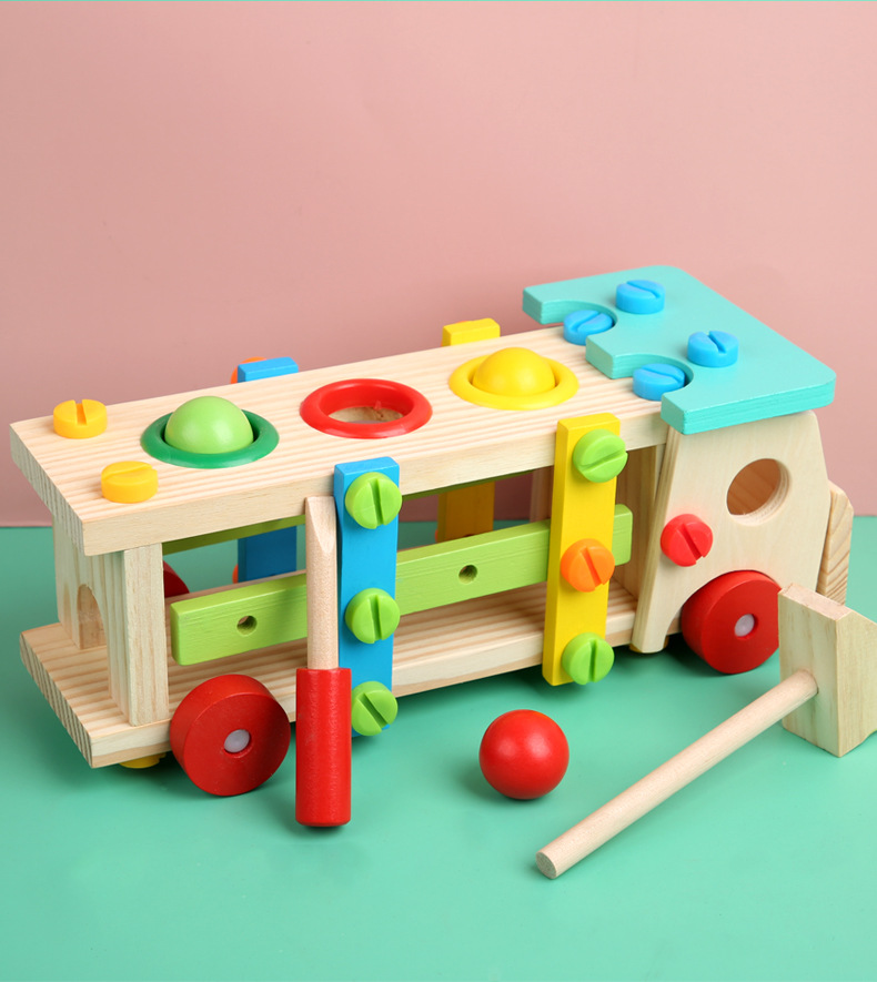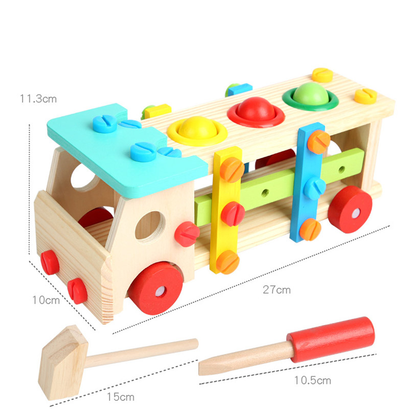 Child removable screw knocks cart Toys 2-3-4-year-old male girl demolition assembly Puzzle Wood Knockout Toy