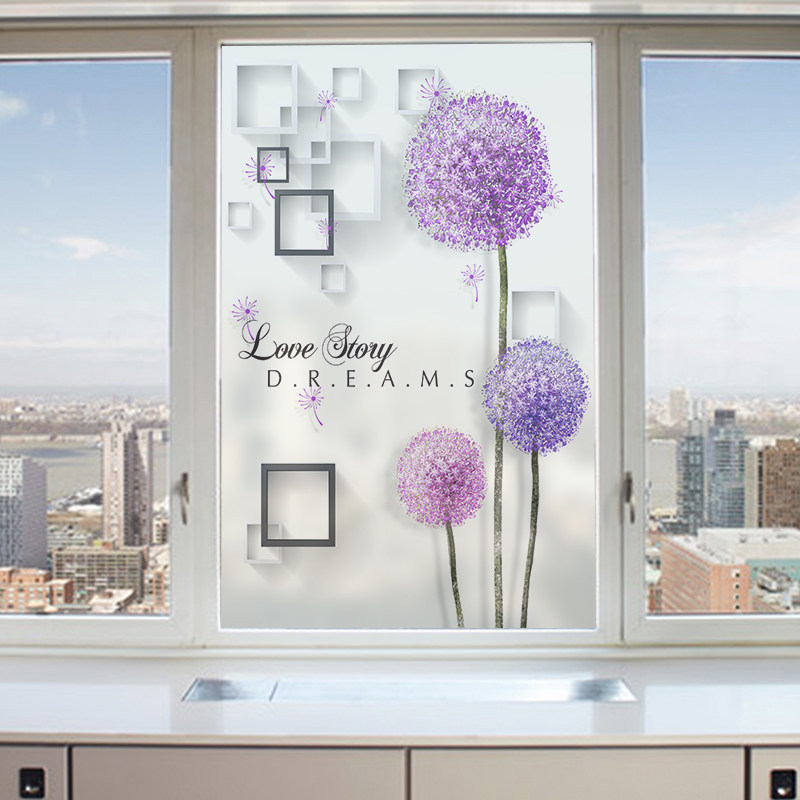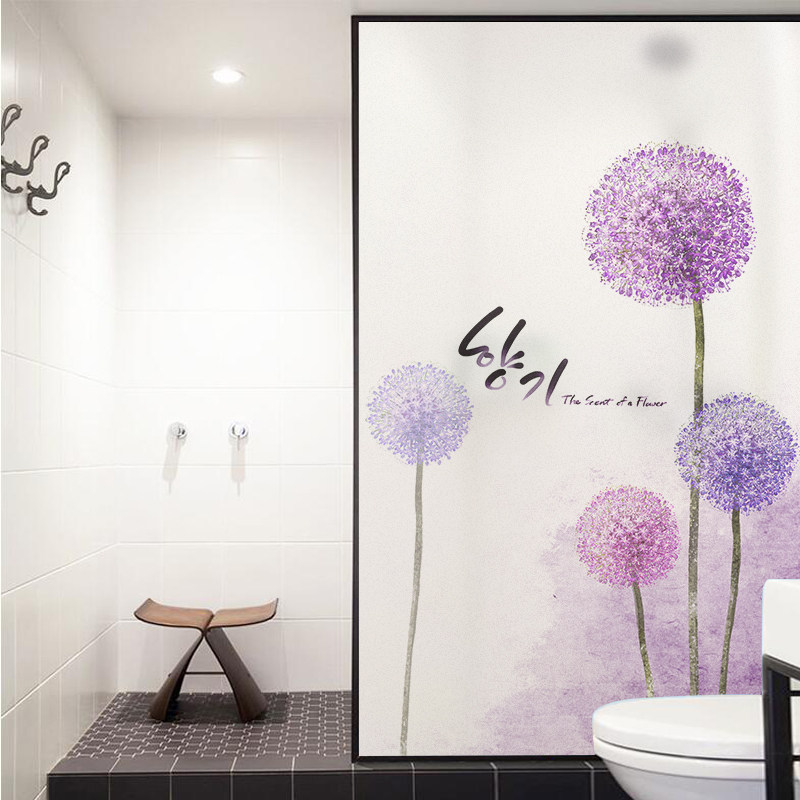 Eurostyle Floral Glass Sticker Bathroom Makeup Room Glass Door Cling Film Light Transmission Opaque Windows Anti-Peep Dandelion