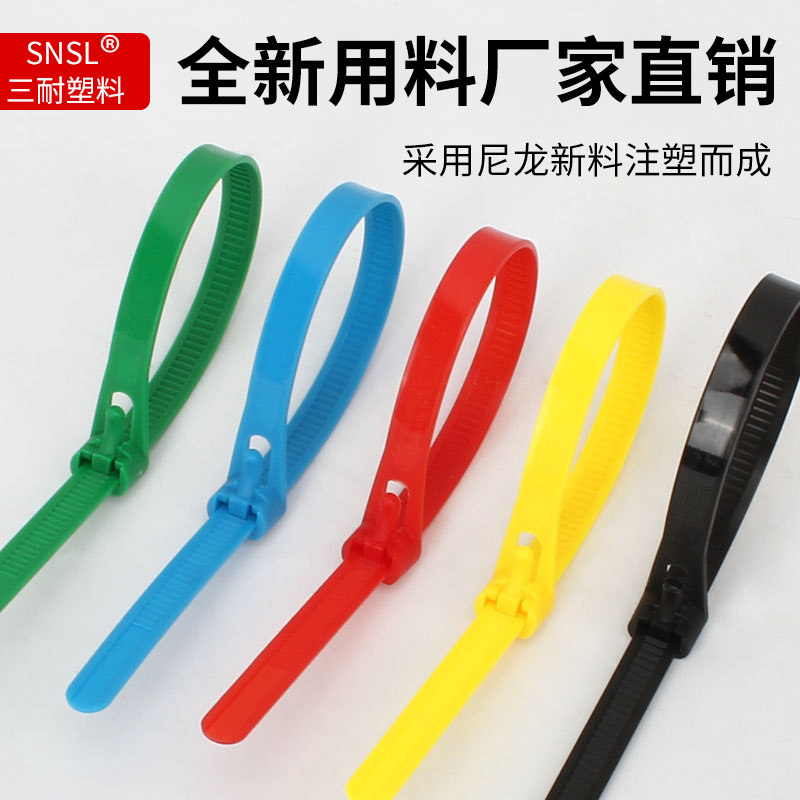 Three-resistant flexible buckle nylon cable tie strong and loosely removable snap-on black and white self-locking plastic large medium cable tie