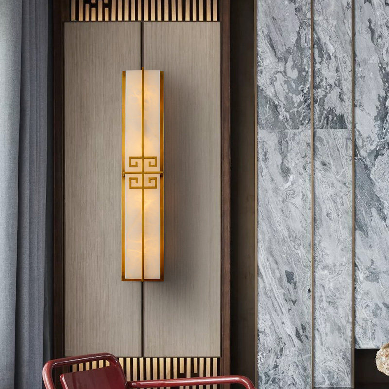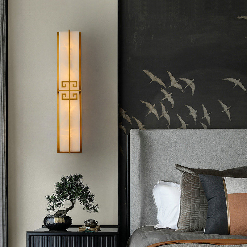 All copper marble wall lamp modern new Chinese style living room TV background wall decoration lamp villa bedroom bedside wall lamp
