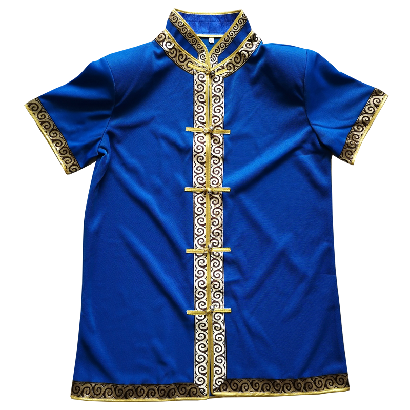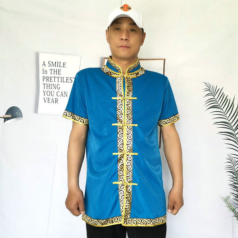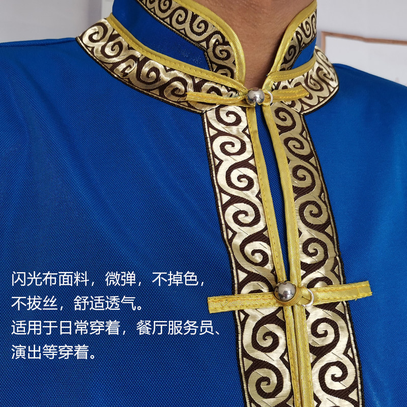 Summer men's Mongolian short sleeves cardiovert coat stand collar national dress shorts Mongolian dining room attendant frock Mongol