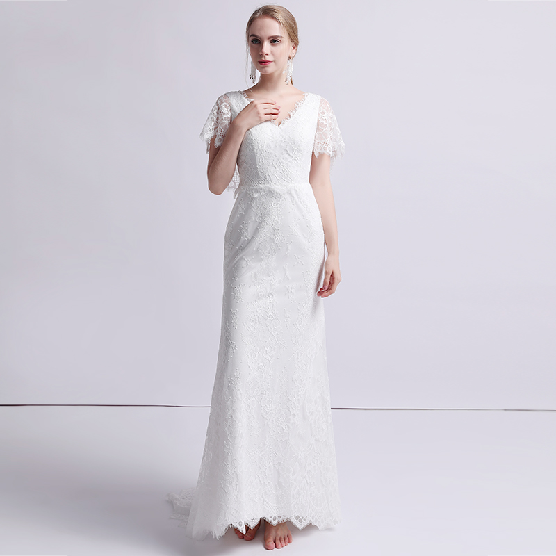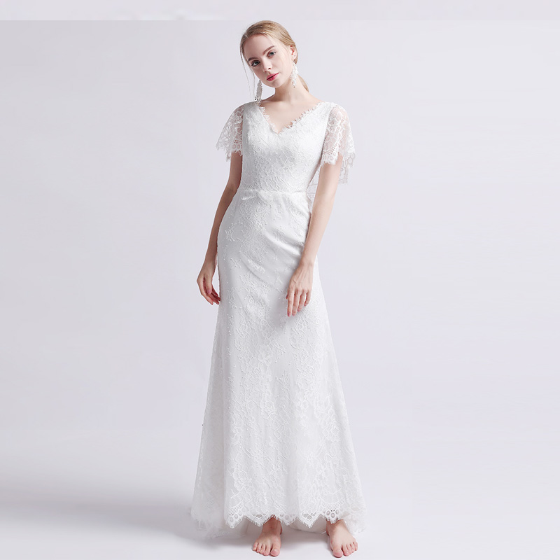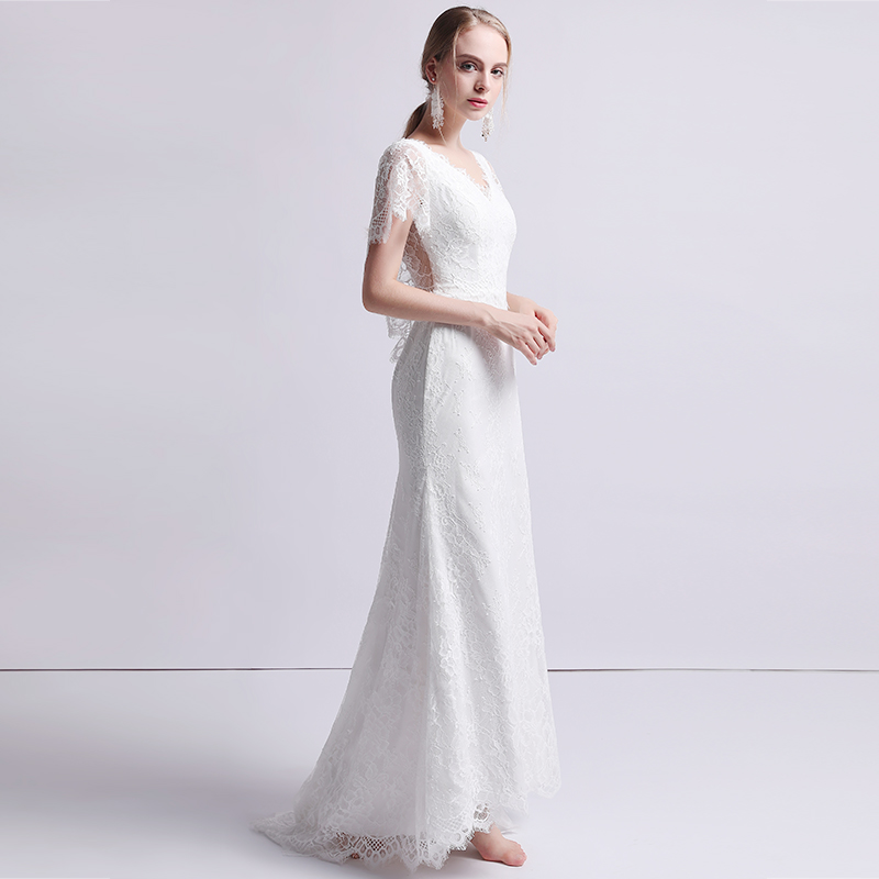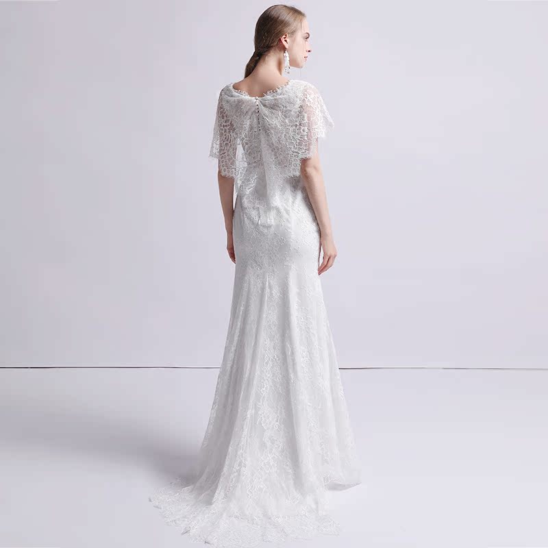 Shenna Original Sensen-style Lace Fish Tail Version Drag V-collar Shoulder Simple Outbound Dress