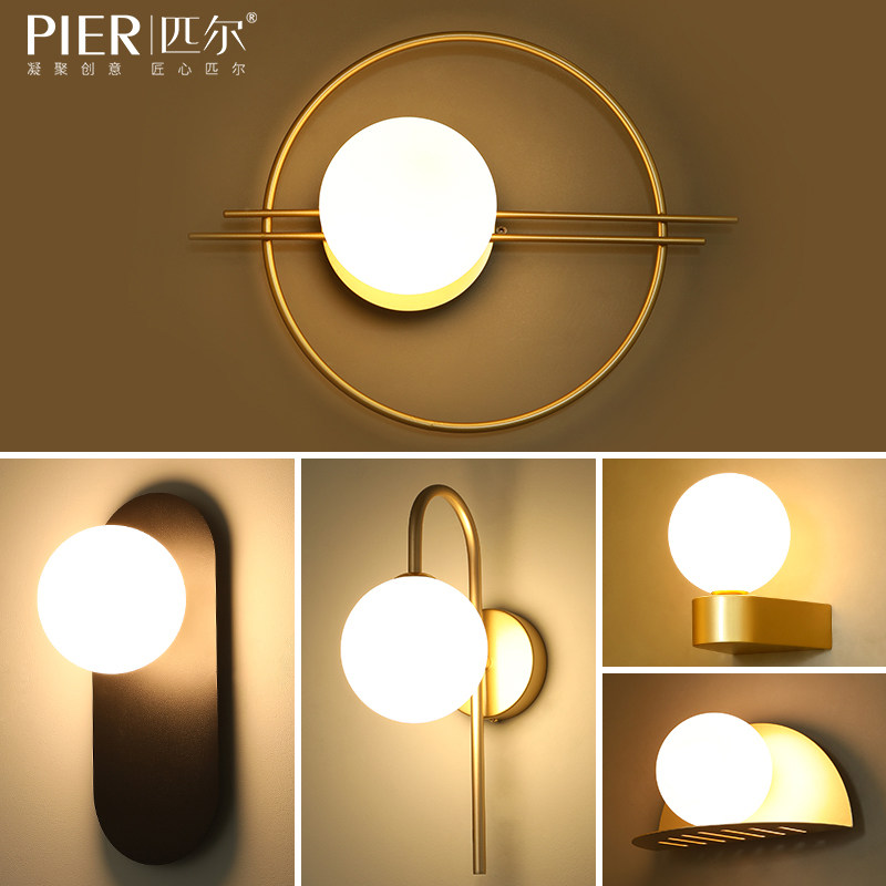 Postmodern bedroom bedside wall lamp simple light luxury atmosphere golden Nordic living room decoration corridor aisle wall lamp