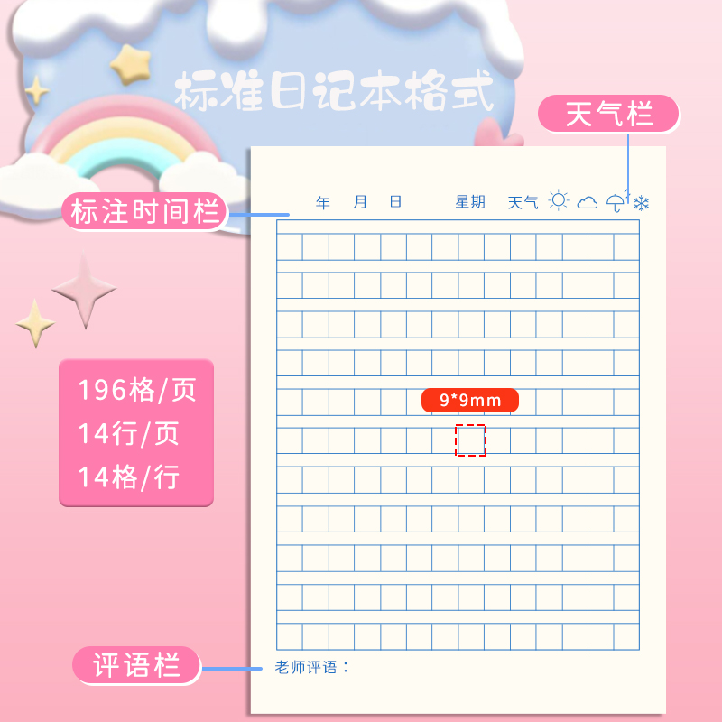 Strength Diary Elementary School Student Homework Book Square Thickened Grade 1 or 2 Beginner Lower Grade Students Elementary School 3rd and 4th Grade Children's Practice Book Special Diary S Boys girls