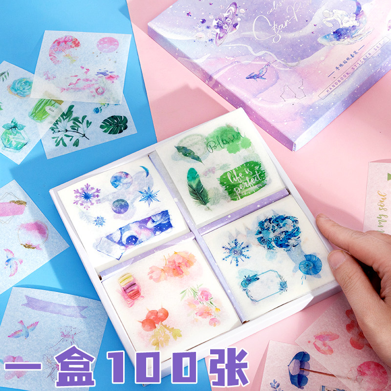 100 handbill sticker material suit small freshener teenage girl's hand account sticker decoration small pattern day style cute super cute cartoon hand account tool retro character net red set of sticker stationery