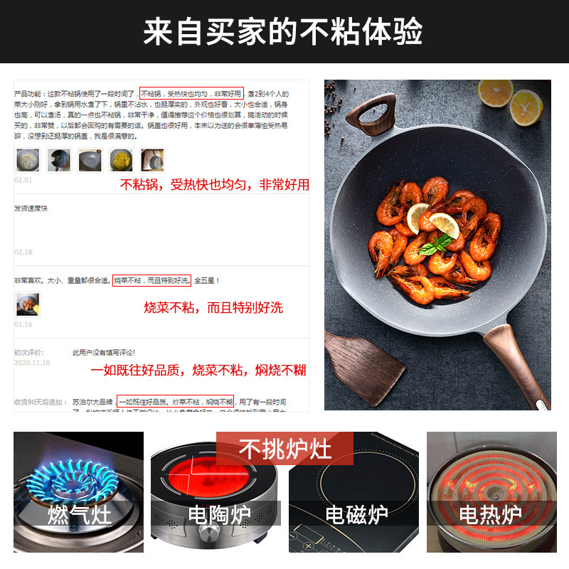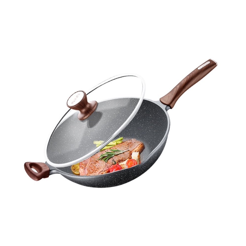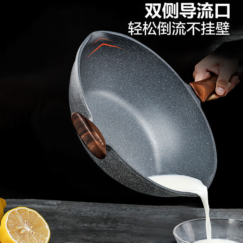 Suber stone cast wheat rice stone non-stick pan frying pan home wok cooking pan smoke-free induction cooker gas pass applicable
