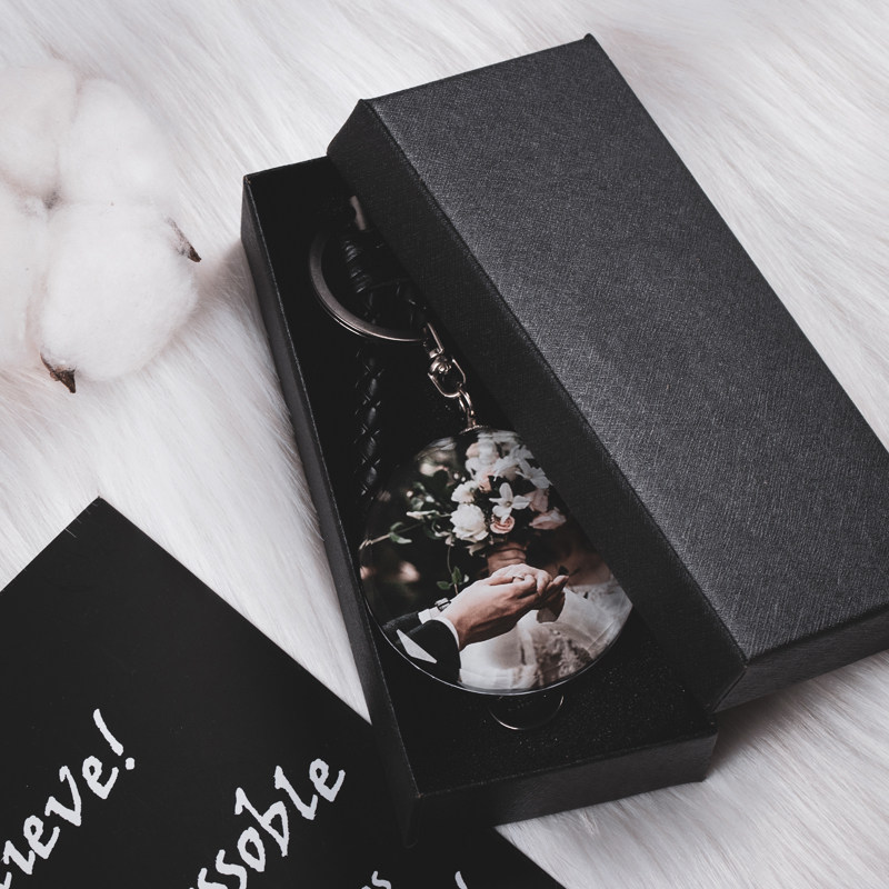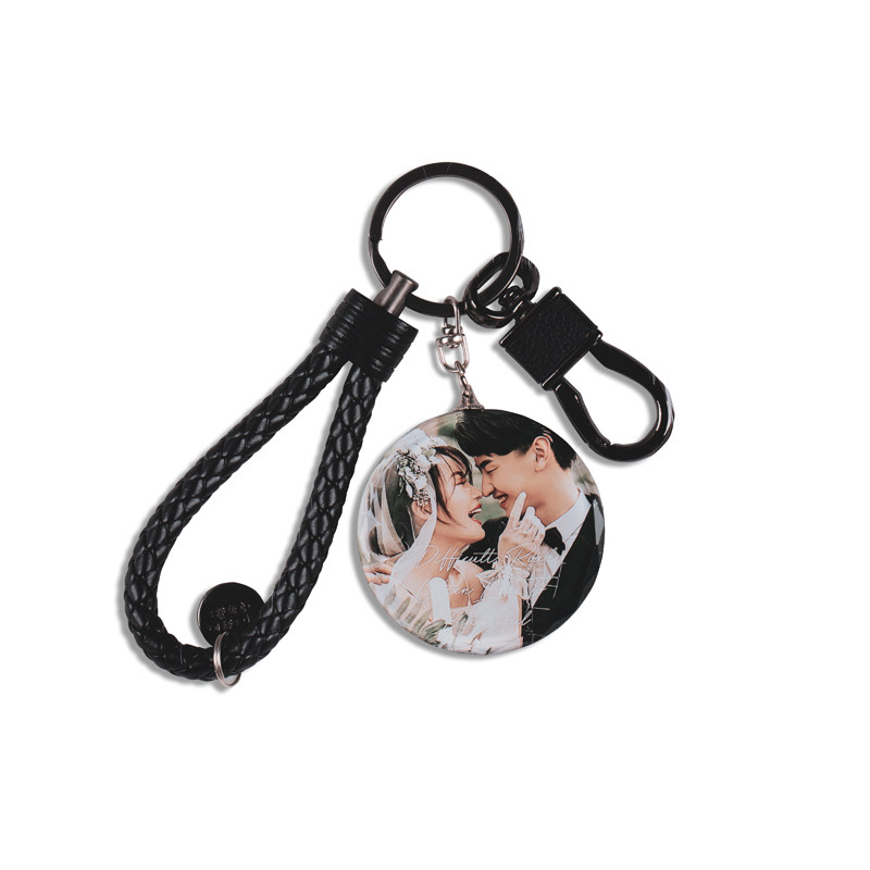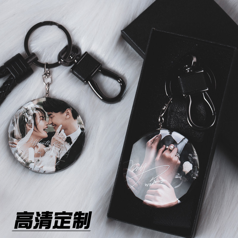 Crystal double-sided photo keychain custom diy high-end simple car keys female ins creative couple birthday gift