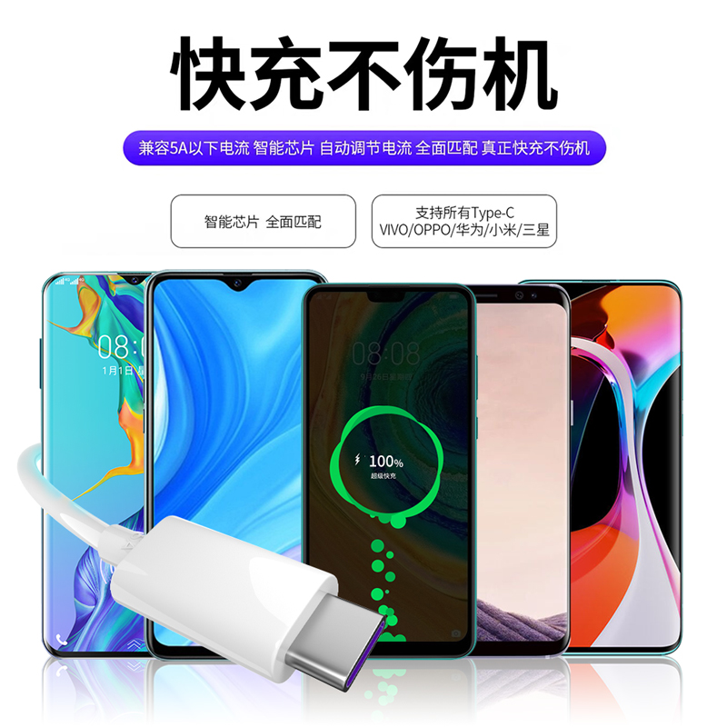 typec data line quick charge applicable Huawei mobile phone Xiaomi 8 youthful version charge line Android original 5a fast charge 6x glory 9 short tpc phone line lengthened 2 m tapec flash charge line