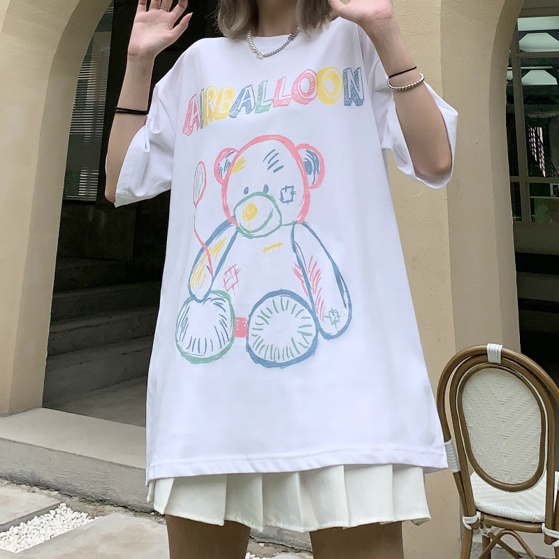 SPEARYOUTH cute kindergarten bear print short-sleeved men's and women's loose T-shirt Xia Guo Tide brand