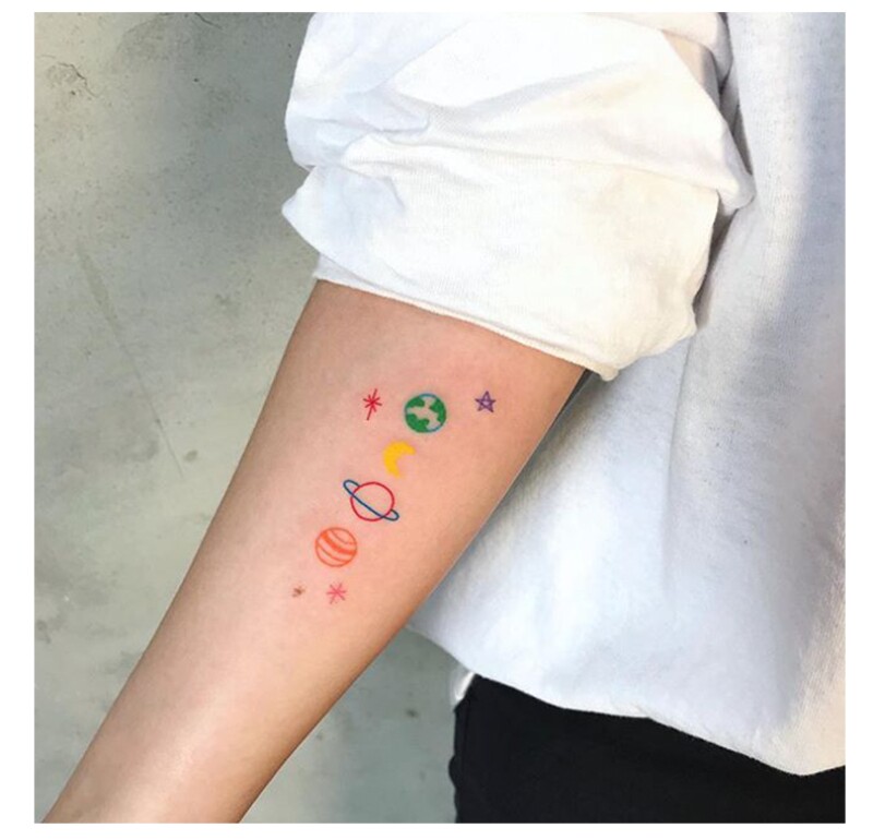 Tattoo stickers waterproof female lasting ins wind Hyuna pattern small fresh disposable girl heart cute color non-1 year