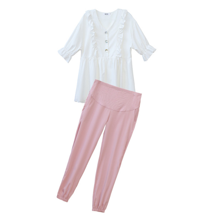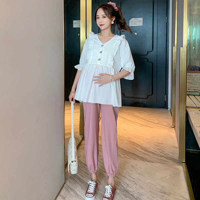 Pregnant Women summer suit out fashion hipster Net red summer loose tide mother Top casual two-piece summer