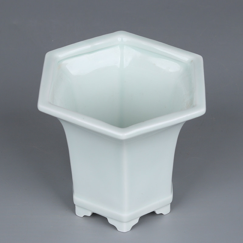 Jingdezhen Yingqing ceramic six square flower pot Imitation Song Dynasty vintage hexagonal small Chinese style classical small fleshy calamus basin