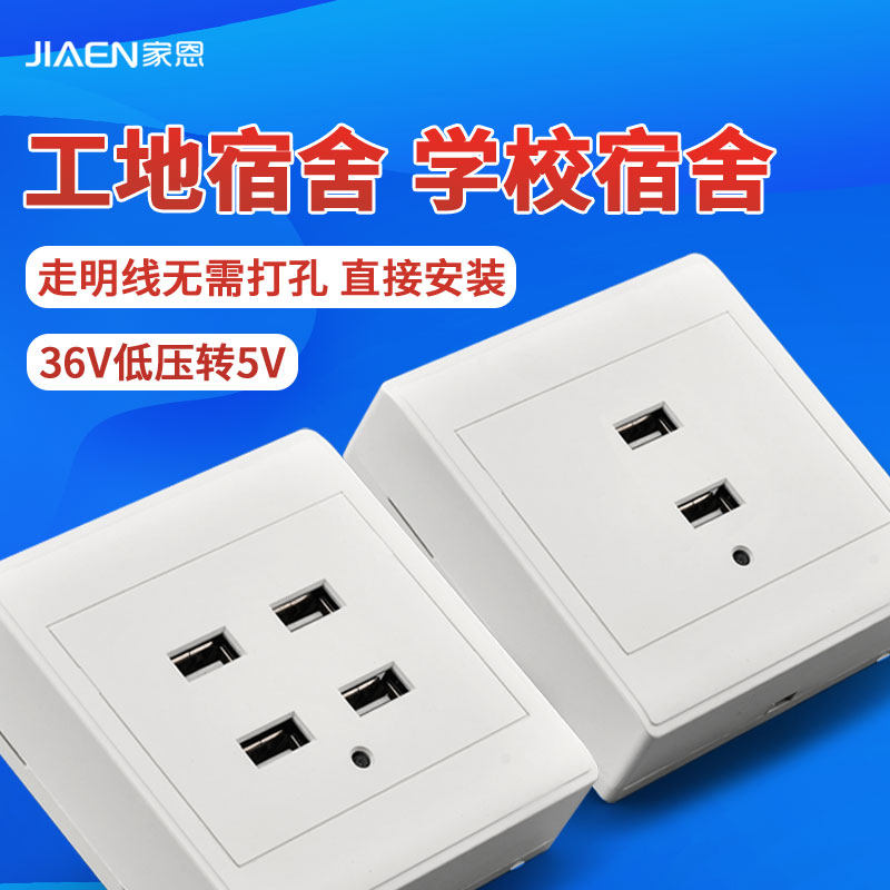 Open four-hole two-port 36V volt low voltage USB socket panel construction site school dormitory mobile phone charging USB socket