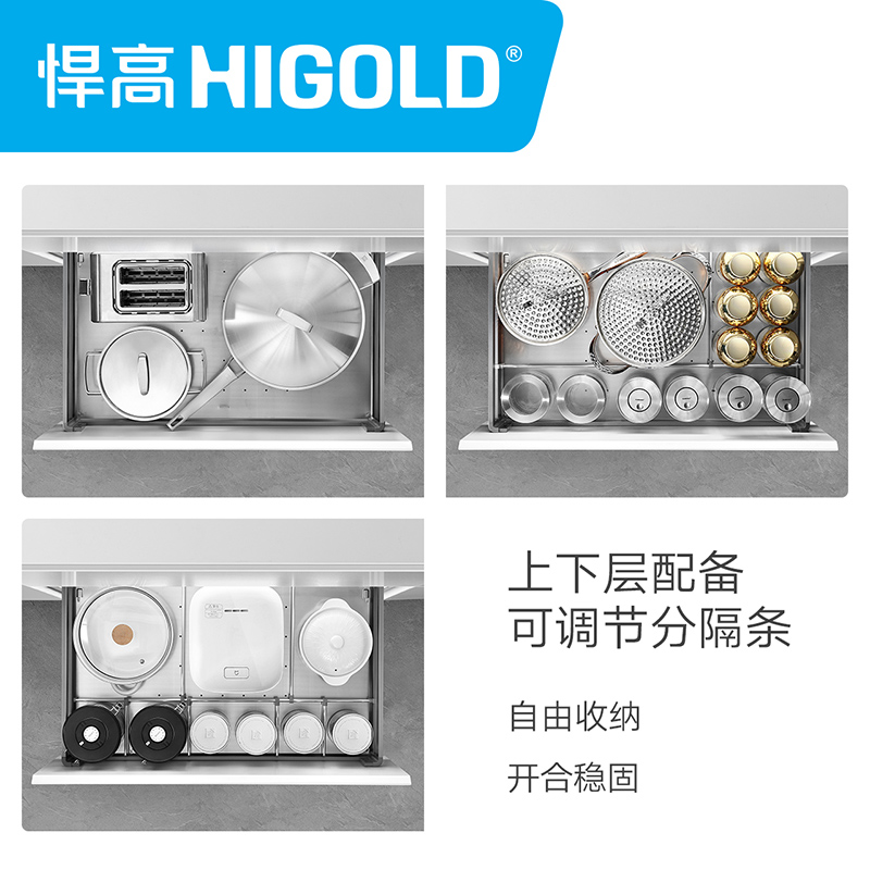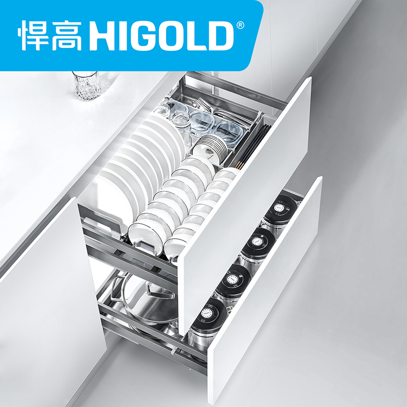 Tough overall cabinet pull basket double decker with built-in bowl frame 304 stainless steel kitchen containing seasoned basket dish basket