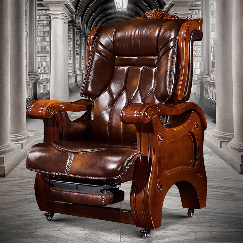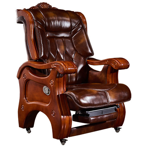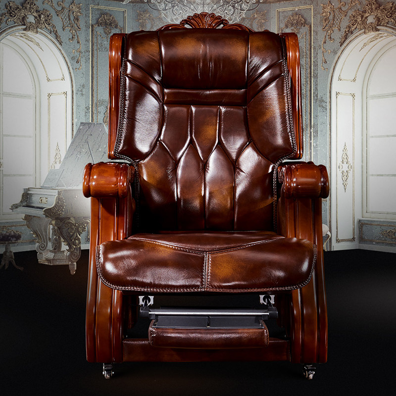 Boss Chair Genuine Leather Solid Wood Computer Chair Home Swivel Chair Large Class Chair Can Lie Massage President Office Chair Book Room Chair