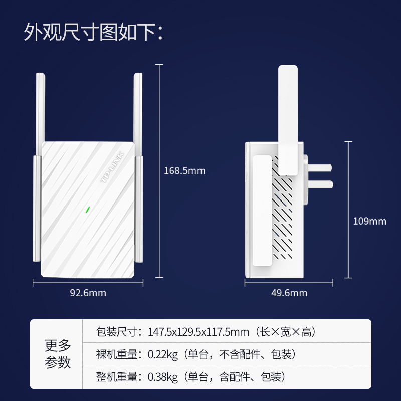 TP-LINK Wall Plug Wireless Router WDR7650 Gigabit Port Mesh Easy Show Edition Distributed 5G Dual Band AC1900M Through-Wall Wifi Signal Bridging Amplifier TL-WDR7632