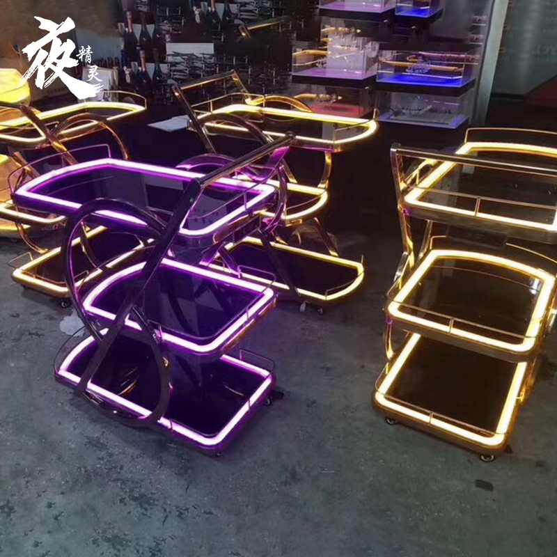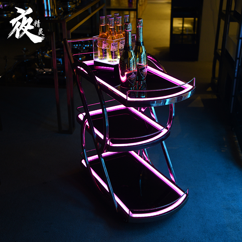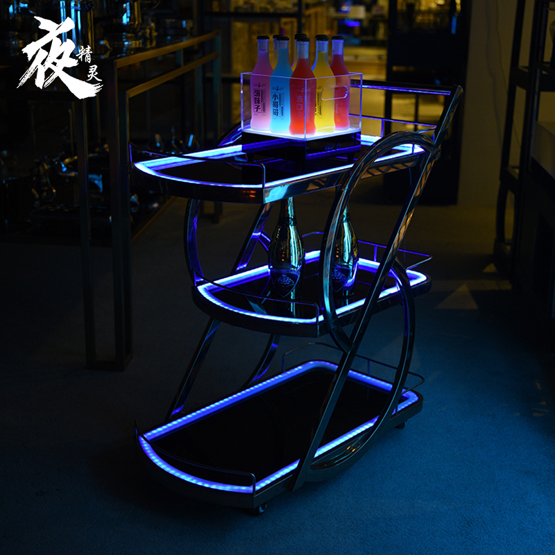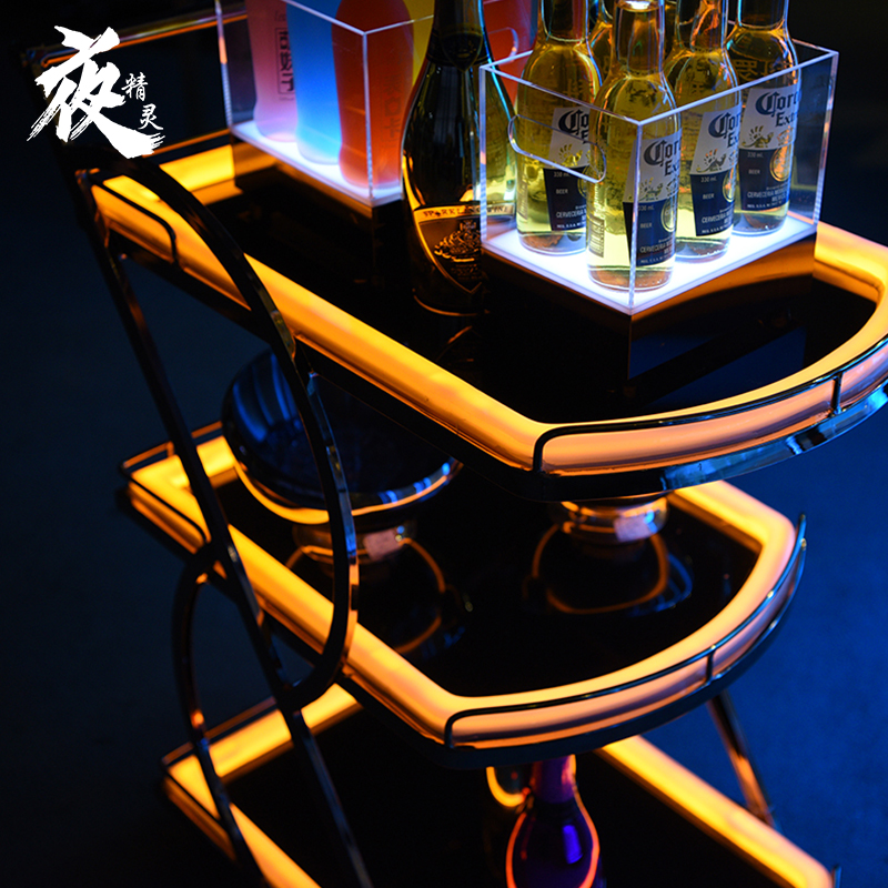 Bar Luminous Small Cart Nightfield KTV Wine Water Snack Delivery Car LED Triple Layer Mobile Push Snack Cake Car