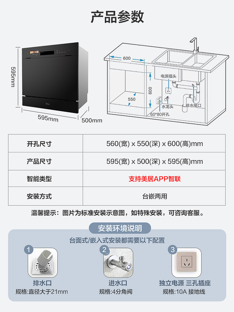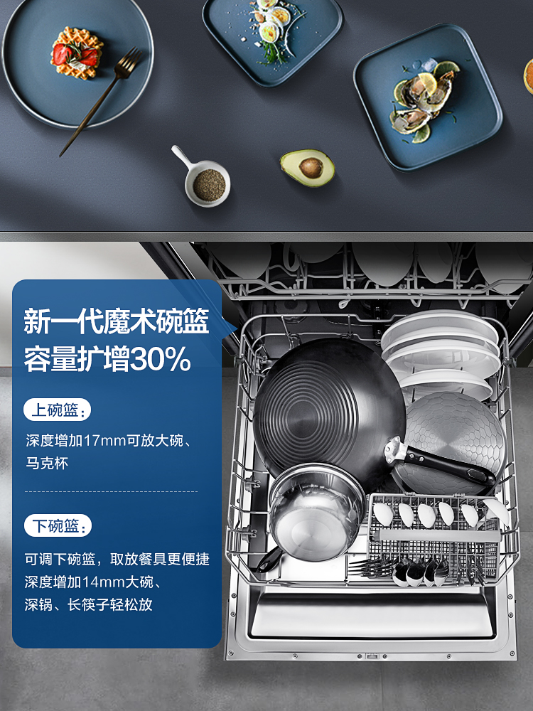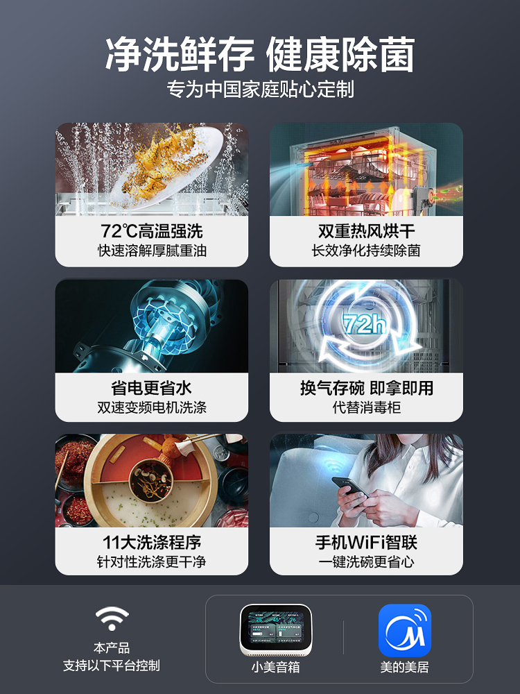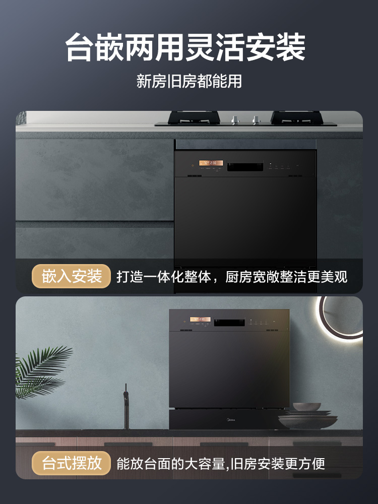 Midea dishwasher home fully automatic table embedded hot drying disinfection 10 sets of smart home appliances brush bowl integrated E7