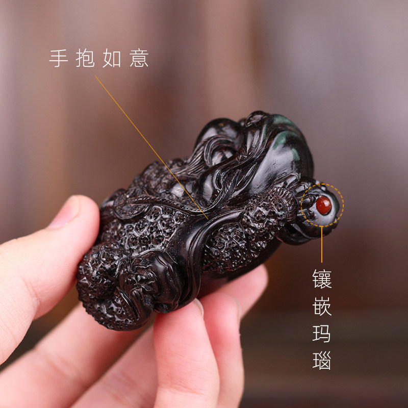 Fu Yun Chang Ebony Wood Cat Handle Piece Dragon Turtle Play Piece Wood Carving Ornament Zen Chinese Style Souvenir