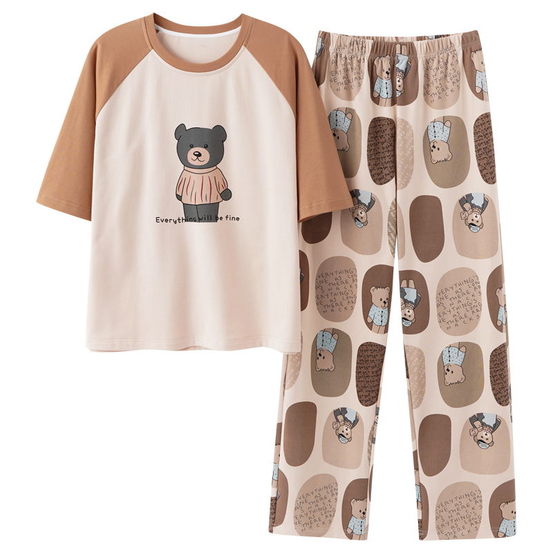 South Pole Pyjamas Women's Summer Pure Cotton Short Sleeves Long Pants Two-piece Suit Korean Version Cartoon Thin and Home Clothing 2022 New