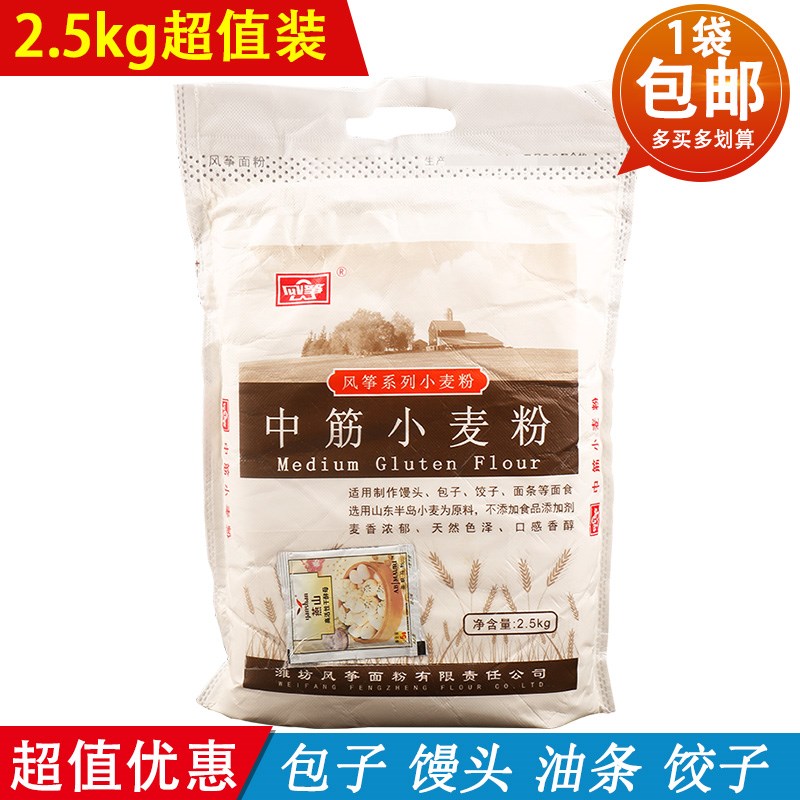 Kites in gluten wheat flour 2 5kg Chinese noodles Noodles Oil Strips Water Dumplings Buns Buns Special Flour 5 Kilos