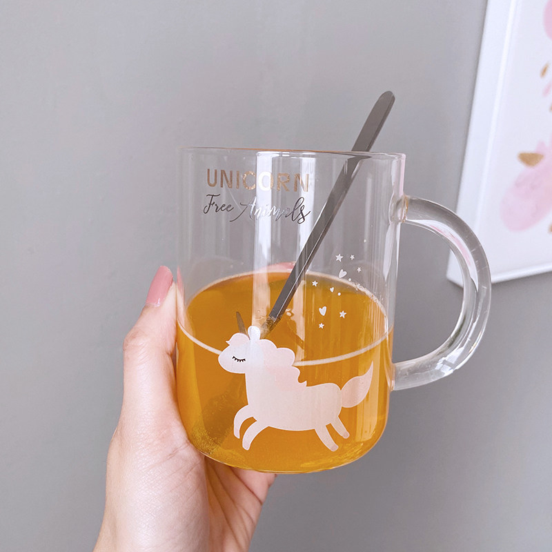 ins unicorn glass 410ml with spoon powder ins unicorn glass 410ml with spoon purple ins unicorn glass 410ml with spoon powder ins unicorn glass