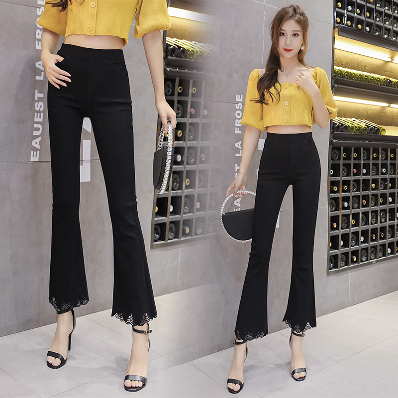 Elastic waist micro flared pants women's autumn high waist thin elastic underwear women wear lace stitching nine points trendy pants