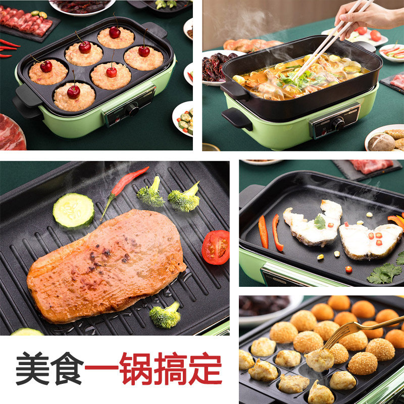 Multi-function cooking pot British net red pot small household electric barbecue hot pot roasting and frying all-in-one pot barbecue plate