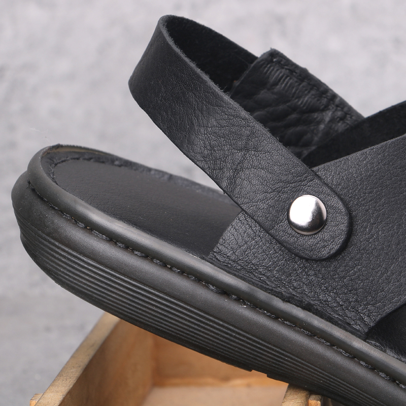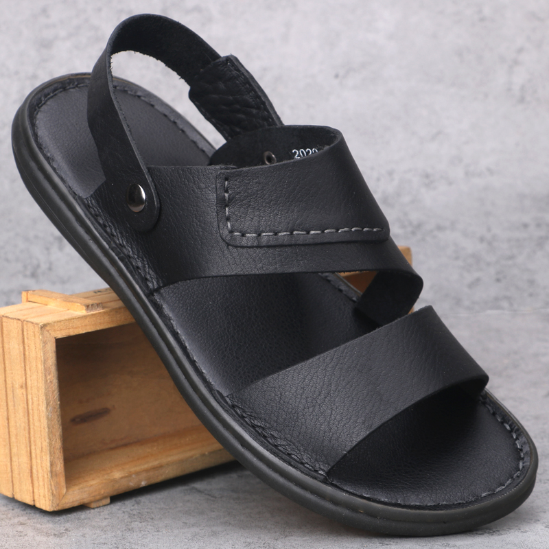 Men's sandals 2022 Summer Leather Non-slip Soft Bottom Beach Men Casual Breathable Bull Fascia Bottom Flat Sandals Dual-use