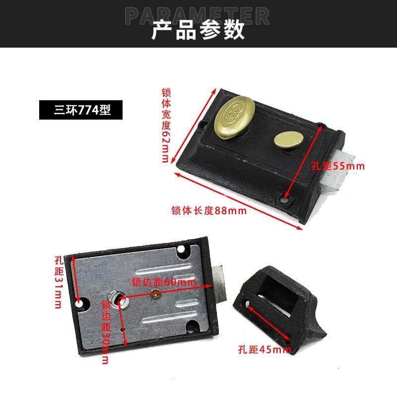 Three-ring 774 black old double insurance lock room inside and outside door lock black bumps for tongue lock billiard door lock-Taobao
