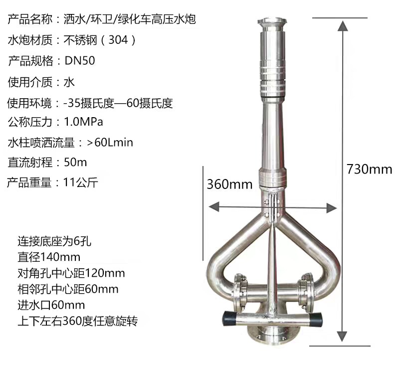 Factory direct sprinkler auto parts stainless steel water gun nozzle spray gun water gun base rotating high pressure water gun assembly